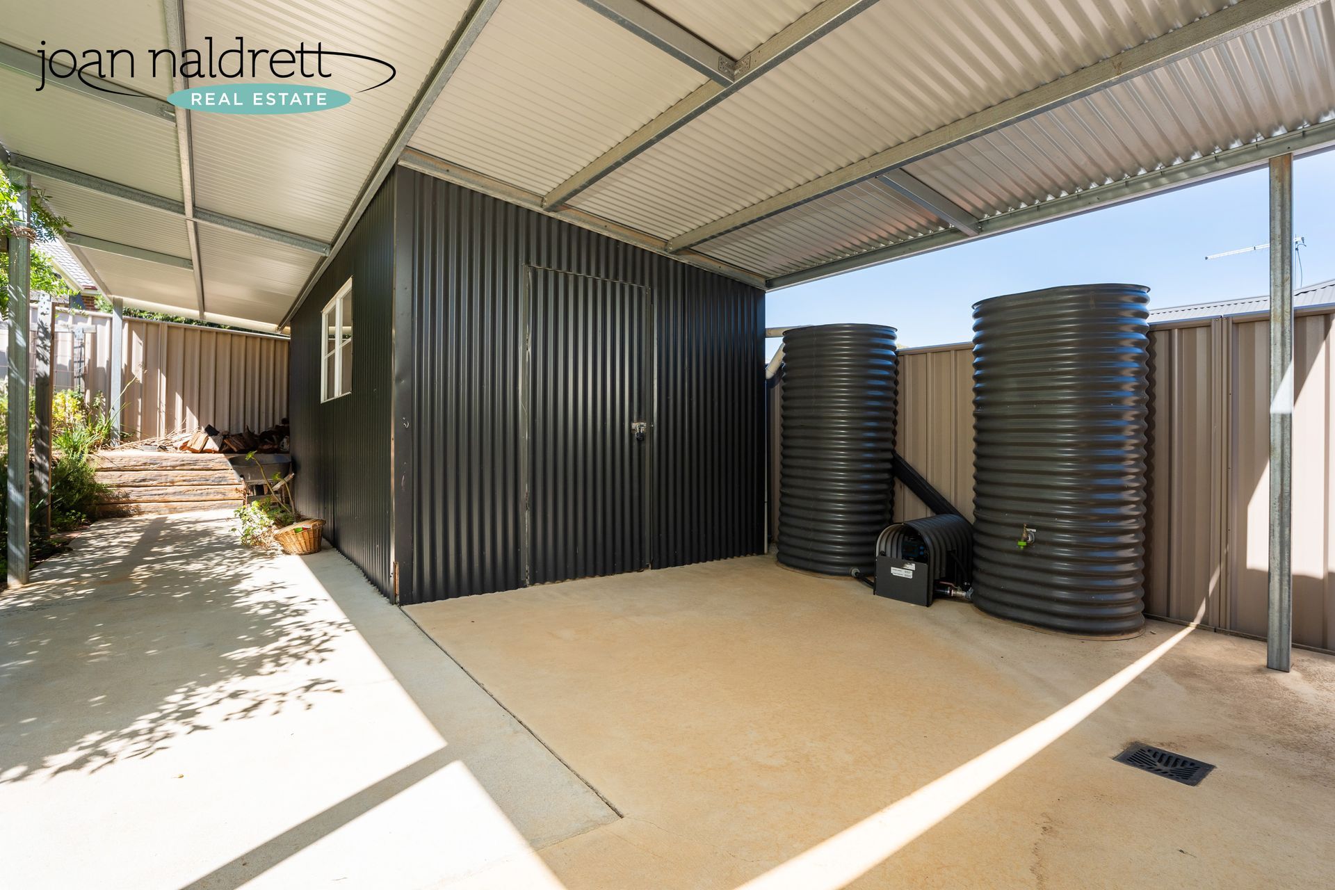 In addition, the property is equipped with evaporative cooling and gas heating to ensure comfort throughout the year. A rear carport and storage shed are also provided for added convenience.